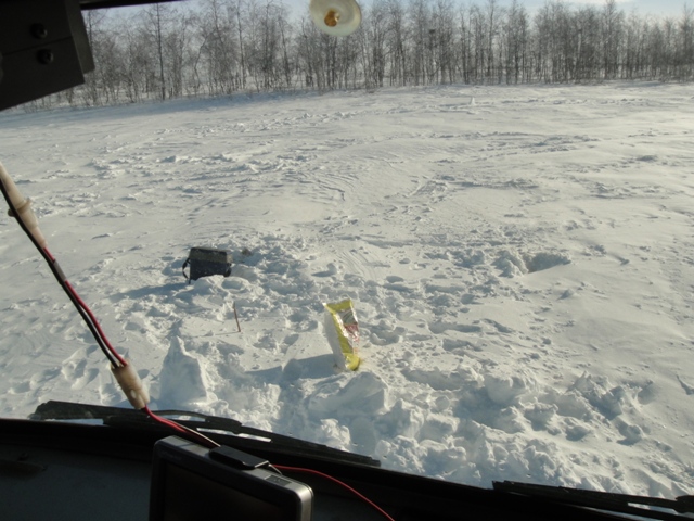 Поездка началась с того что на улице вдарил мороз до -28 и на батоне Андрея стал замерзать бензонасос, движение из за этого было замедленно. На подъезде к заполярке на моем батоне тоже подмерзала солярка. Первым шел Форд он бил нам дорожку очень уверено, слёты были, но главное что нас не останавливали такие мелочи :) В общем в семь утра мы были на озере, температура была -10 градусов.